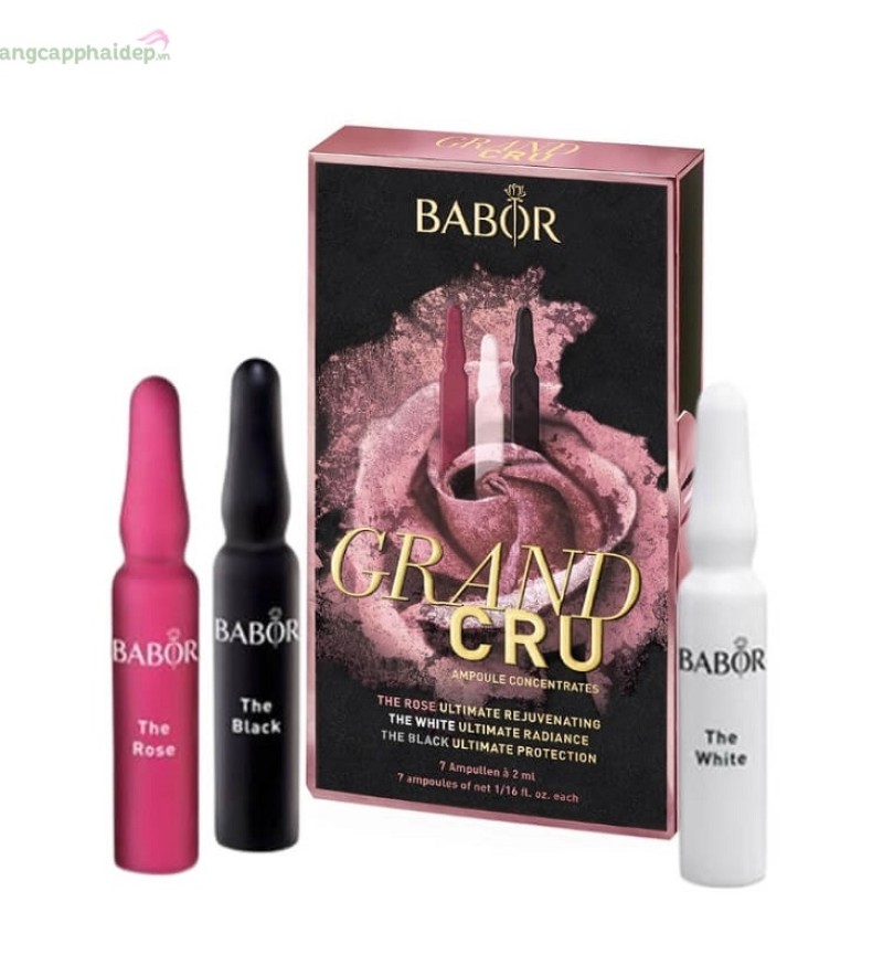 Tinh chất trẻ hóa da Babor Grand Cru là giải pháp chống lão hóa, dưỡng trắng và tái tạo da cao cấp, đến từ thương hiệu mỹ phẩm Babor - Đức. Sản phẩm được chiết xuất từ 3 loài hoa hồng quý hiếm: Damask, Alba trắng và đen Baccara, kết hợp công nghệ bào chế tiên tiến, giúp ngăn ngừa lão hóa, kích thích sản sinh collagen, tăng cường độ đàn hồi, dưỡng ẩm, làm sáng da, mang đến làn da căng mịn, trắng hồng, trẻ trung rạng rỡ.