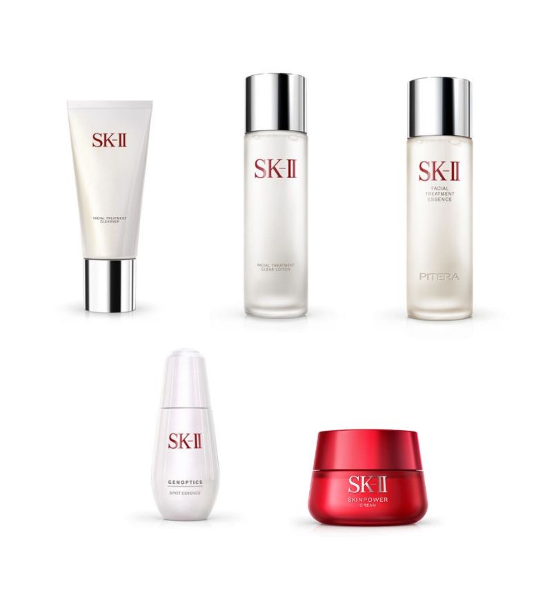Bộ sản phẩm bao gồm 5 "siêu phẩm": Sữa rửa mặt SK-II Facial Treatment Gentle Cleanser 120g, Nước hoa hồng SK-II Facial Treatment Clear Lotion 230ml, Nước thần SK-II Facial Treatment Essence 230ml, Serum trị nám SK-II Genoptics Spot Essence 50ml và Kem chống lão hóa SK-II Skinpower Cream 80g mang đến quy trình chăm sóc da toàn diện và hiệu quả vượt trội.