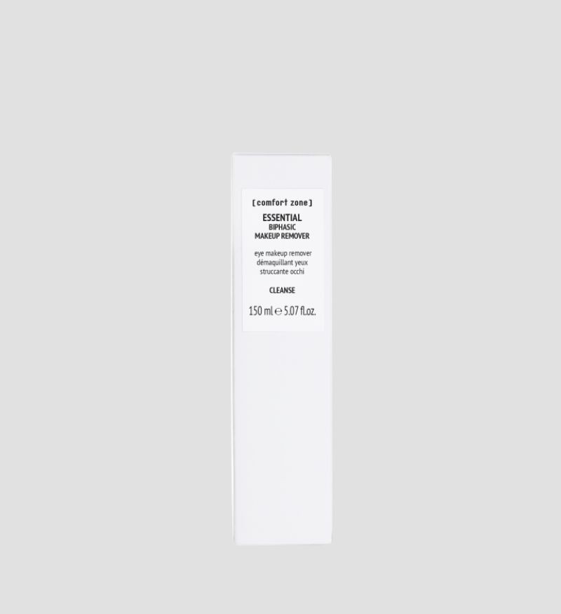 Essential Biphasic Makeup Remover 150ml là nước tẩy trang dành riêng cho vùng mắt và môi, của thương hiệu [COMFORT ZONE] được thiết kế với công thức hai pha (biphasic) đặc biệt, kết hợp dầu và nước, giúp nhẹ nhàng loại bỏ lớp trang điểm, kể cả mascara và son lì lâu trôi, mà không gây kích ứng cho vùng da mỏng manh quanh mắt và môi.