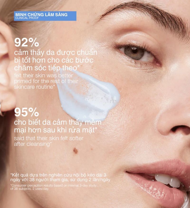 Làm sạch dịu nhẹ bụi bẩn, bã nhờn và tạp chất.