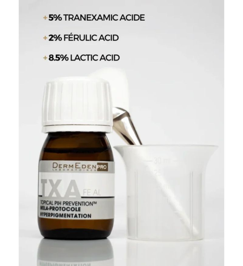 DermEden TXA FE AL 5.2.8 là dung dịch chuyên biệt giúp cải thiện và phòng ngừa tăng sắc tố sau viêm (PIH), đặc biệt hiệu quả sau các thủ thuật da liễu như peel da, laser, vi kim hoặc chiếu đèn LED.