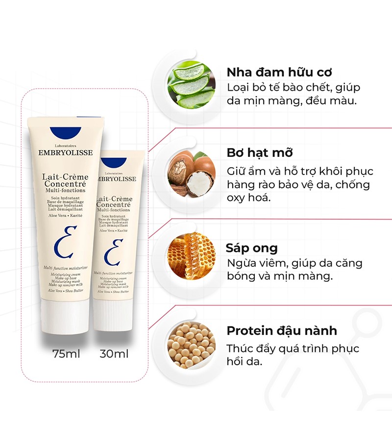 Kem dưỡng ẩm Embryolisse Lait-Crème Concentré là sản phẩm "must-have" của các chuyên gia trang điểm và người nổi tiếng trên toàn thế giới. Với công thức độc đáo, sản phẩm không chỉ dưỡng ẩm sâu mà còn mang lại nhiều công dụng tuyệt vời khác cho làn da.