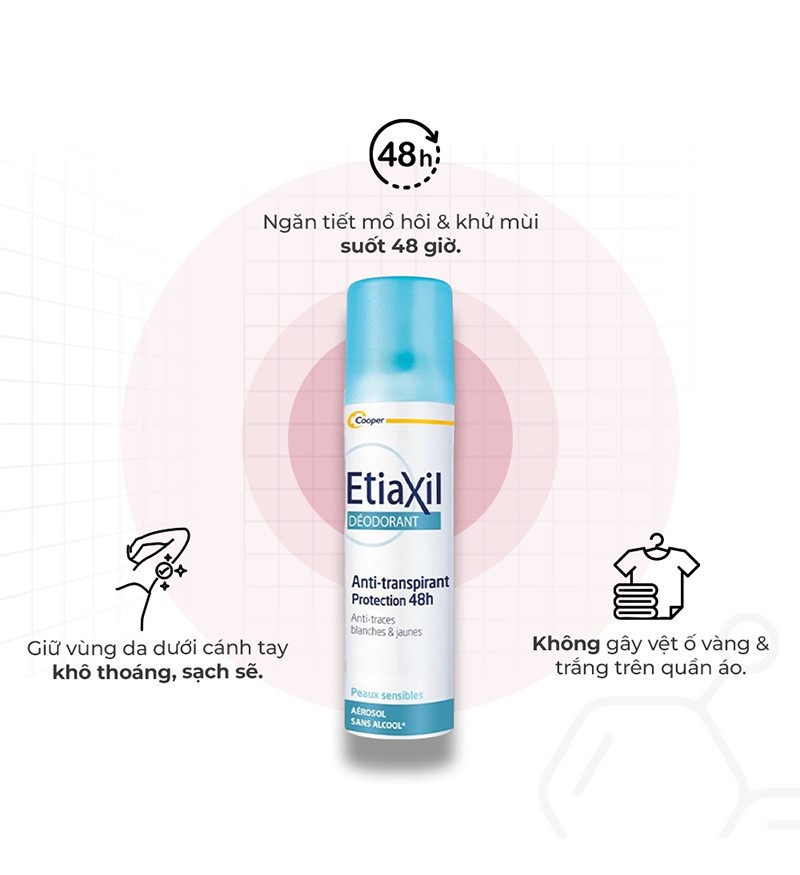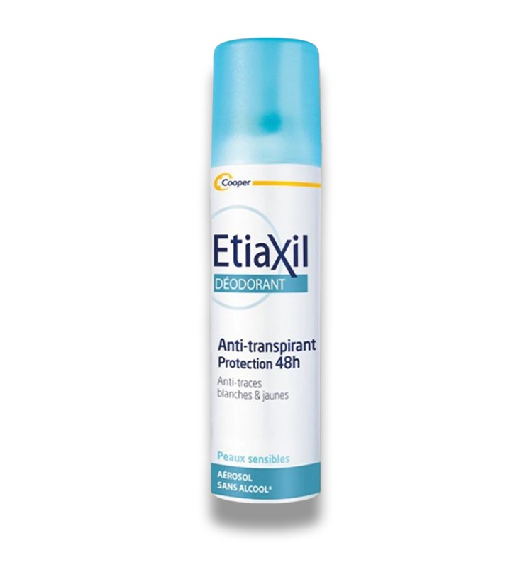 Xịt khử mùi Etiaxil Déodorant Anti-Transpirant 48h Anti-Traces Blanches & Jaunes chính là "cứu tinh" giúp bạn "xua tan" nỗi lo vì cơ thể ẩm ướt, có mùi hôi khó chịu và lo lắng về những vệt trắng, vàng trên áo. Với công thức đặc biệt, sản phẩm giúp ngăn tiết mồ hôi, khử mùi hôi và mang lại cảm giác khô thoáng, tự tin suốt 48 giờ, đồng thời không để lại vệt trắng hay vàng trên áo.