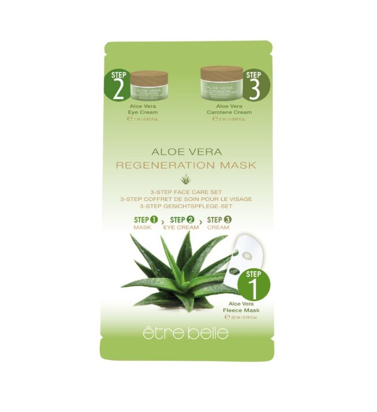 Etre Belle Aloe Vera Regeneration Mask 3 Step Face Care là bộ sản phẩm mặt nạ dưỡng da 3 bước của thương hiệu Etre Belle được thiết kế dành riêng cho làn da khô, bong tróc, giúp cấp ẩm sâu, làm dịu và phục hồi da, mang lại làn da tươi trẻ, mềm mại.