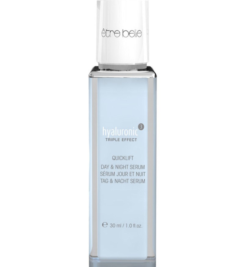 Etre Belle Hyaluronic Day Night Serum mang đến hiệu quả dưỡng ẩm sâu nhờ sự kết hợp giữa Acid Hyaluronic chuỗi dài, ngắn và QuickLift™. Ngoài ra sản phẩm còn giúp nâng cơ, chống oxy hóa, dưỡng ẩm, làm mờ nếp nhăn và làm săn chắc da hiệu quả.