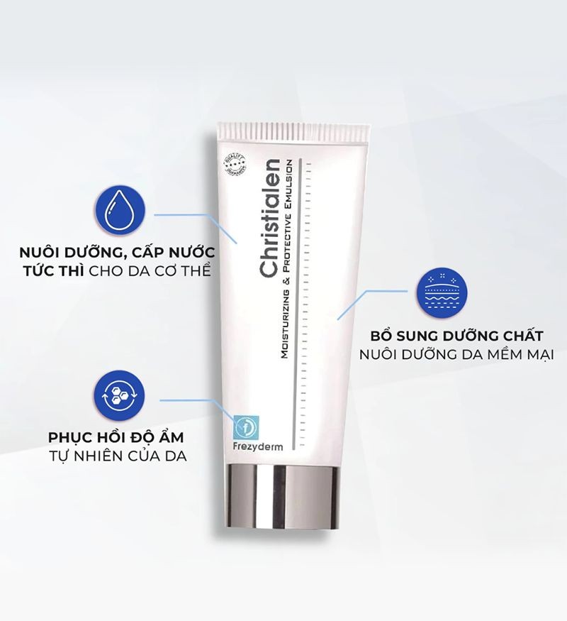 Frezyderm Christialen là nhũ tương dưỡng thể chuyên biệt dành cho làn da khô, mang đến giải pháp cấp ẩm sâu và làm mềm mịn da vượt trội. Với công thức chứa các thành phần dưỡng ẩm cao cấp như Sodium Hyaluronate, Filagrin Activator và Panthenol, sản phẩm không chỉ giúp cải thiện độ ẩm da lên tới 28% chỉ sau 30 ngày sử dụng mà còn hỗ trợ phục hồi, bảo vệ làn da trước các tác động từ môi trường.
