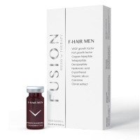 Fusion F-Hair Men hỗ trợ điều trị rụng tóc hiệu quả với sự pha trộn các peptide, các yếu tố tăng trưởng, silicat hữu cơ, panthenol và hyaluronic acid. Các dưỡng chất sẽ tác động trực tiếp lên DHT ngăn ngừa chu kỳ tóc để rút ngắn và thu nhỏ nang tóc, cải thiện các protein ECM trong các nhú da xung quanh chân tóc để bám vào da đầu tốt hơn.