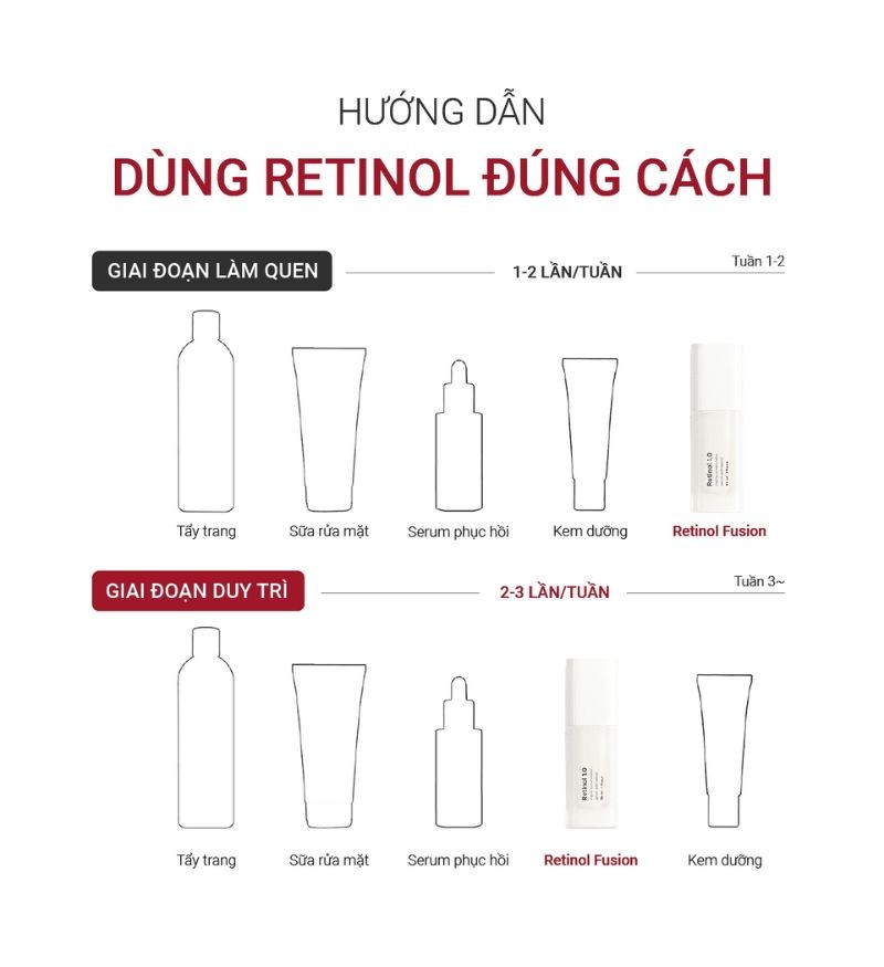 Dù là Fusion Retinol 0.3 hay bất cứ dòng sản phẩm Retinol nào thì cũng đều cần chia giai đoạn sử dụng: