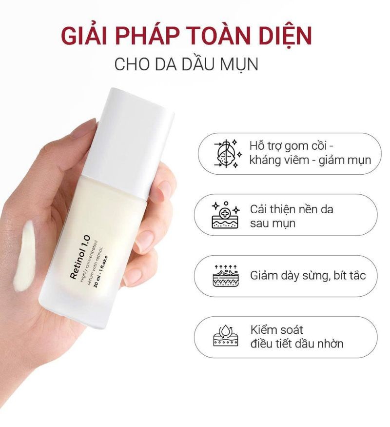 Retinol tinh khiết 0.3%: Hoạt chất “vàng” trong chăm sóc da giúp thúc đẩy tái tạo tế bào, cải thiện mụn, thâm và nếp nhăn, mang lại làn da mịn và săn chắc hơn theo thời gian.