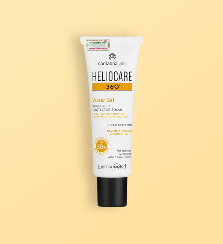 Kem chống nắng Heliocare 360 Water Gel SPF 50 giúp bảo vệ da khỏi tia UVA/UVB, ánh sáng xanh (HEV), tia hồng ngoại (IR-A). Sản phẩm đến từ thương hiệu dược mỹ phẩm Heliocare - Tây Ban Nha.