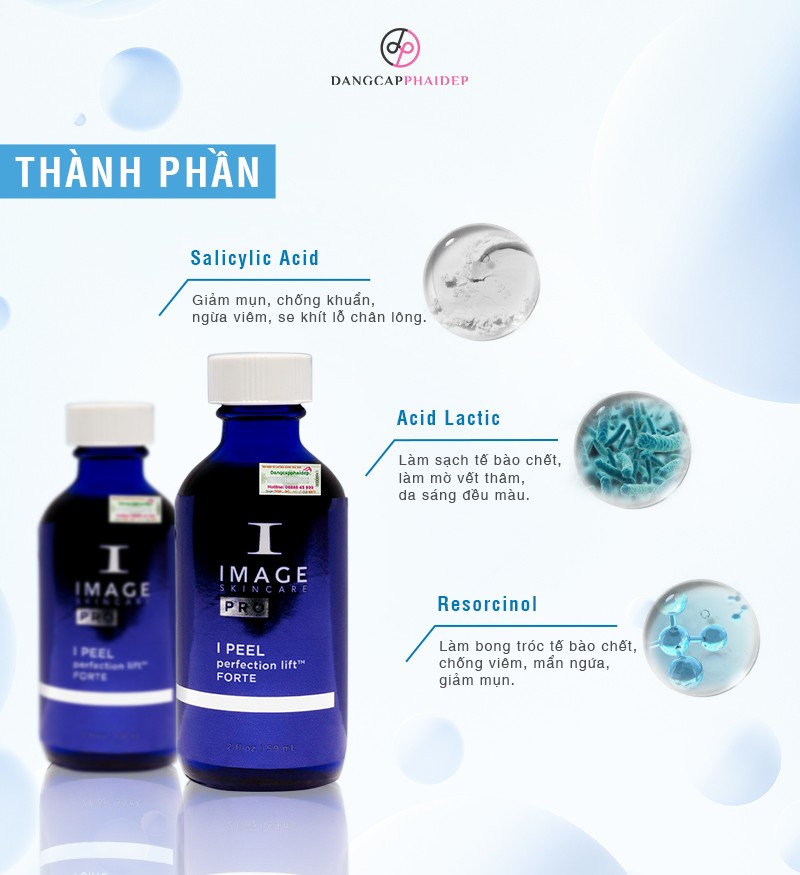 Image I Peel Perfection Lift Forte thuộc dòng Image I Peel - Công nghệ thay da hóa học đặc trưng và độc quyền của Image Skincare giúp đảo ngược các dấu hiệu lão hóa, cải thiện nhiễm sắc tố và da mụn hiệu quả. Sản phẩm này được chiết xuất từ các thành phần như axit lactic, axit salicylic và resorcinol. Nhanh chóng và hiệu quả làm giảm sự xuất hiện của lão hóa da, các hắc sắc tố và mụn trứng cá. Đồng thời, phục hồi làn da bị tổn thương, chăm sóc da luôn tươi trẻ, khỏe mạnh đầy sức sống.