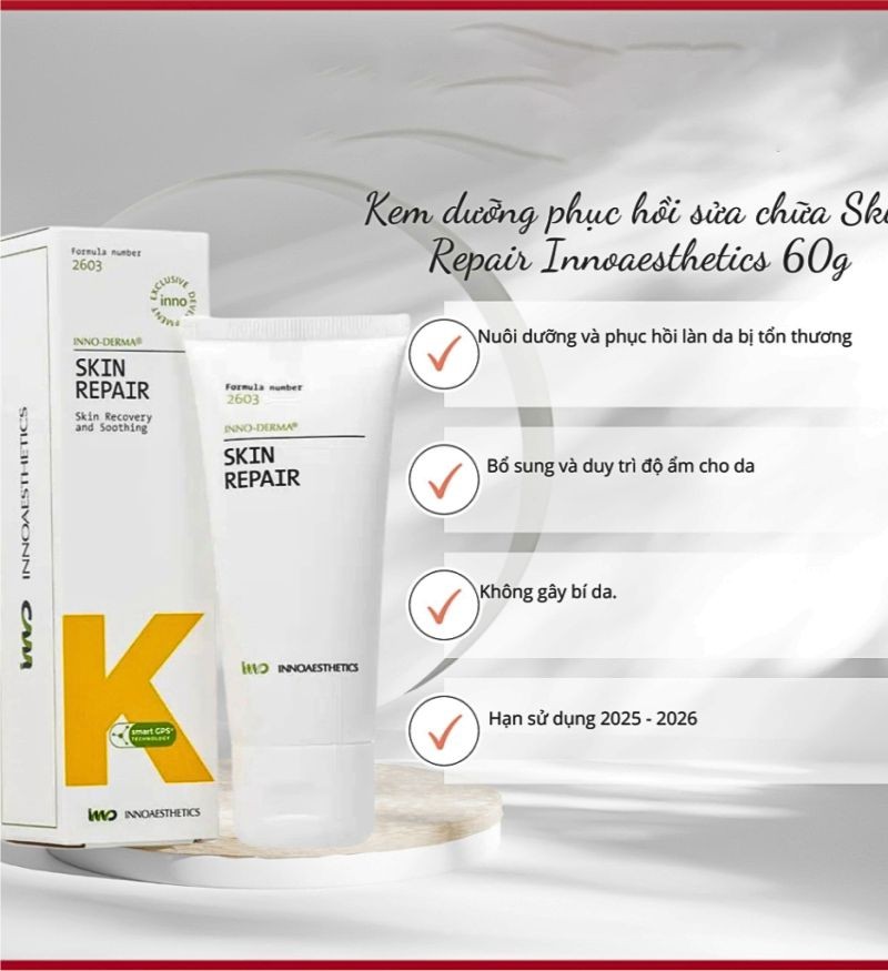 Là "cứu tinh" cho làn da tổn thương, kem dưỡng sửa chữa, phục hồi da Innoaesthetics Inno-Derma Skin Repair của Innoaesthetics được tin dùng bởi các chuyên gia da liễu và người tiêu dùng. Với công thức độc đáo kết hợp các thành phần tiên tiến, sản phẩm mang đến hiệu quả vượt trội trong việc phục hồi da sau các liệu trình thẩm mỹ xâm lấn hoặc tổn thương do các tác nhân bên ngoài.