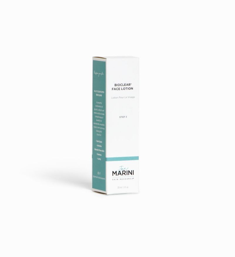 Jan Marini Bioclear Face Lotion là lotion tái tạo bề mặt da của Jan Marini (Mỹ), được thiết kế cho các vấn đề da thường gặp như mụn, thâm sau mụn, da sần kém mịn, lỗ chân lông to, nếp nhăn nhỏ và da không đều màu. Công thức này hướng đến việc vừa làm mới bề mặt da, vừa hỗ trợ làm sạch lỗ chân lông để làn da trông sáng và trong hơn theo thời gian.