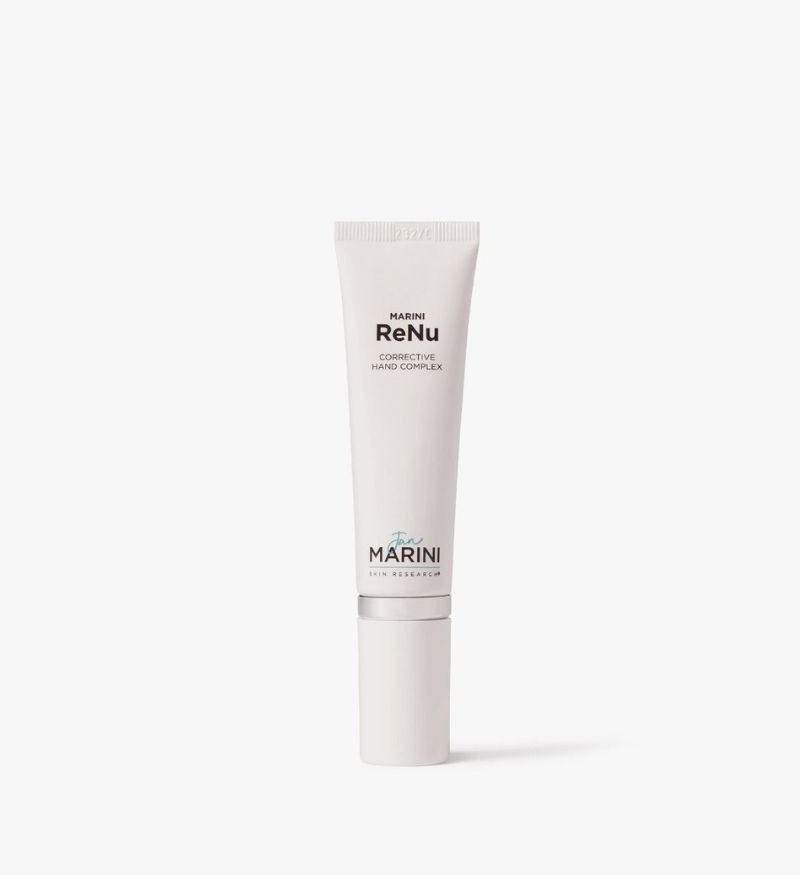 Jan Marini ReNu Corrective Hand Complex là sản phẩm chăm sóc da tay chuyên sâu đến từ thương hiệu Jan Marini (Mỹ). Sản phẩm sở hữu công thức độc quyền được cấp bằng sáng chế nhằm cải thiện các dấu hiệu lão hóa rõ rệt trên mu bàn tay. Đôi bàn tay vốn thường xuyên tiếp xúc với ánh nắng và hóa chất nên dễ xuất hiện nếp nhăn, đốm đồi mồi và kết cấu da thô ráp. ReNu Corrective Hand Complex ứng dụng phương pháp đa chiều thông qua sự kết hợp của Retinol, Alpha Arbutin, Axit Azelaic và Vitamin C giúp làm sáng tông màu da, hỗ trợ mờ thâm nám, nếp nhăn và tinh chỉnh bề mặt da mịn màng hơn mà không cần sử dụng Hydroquinone.