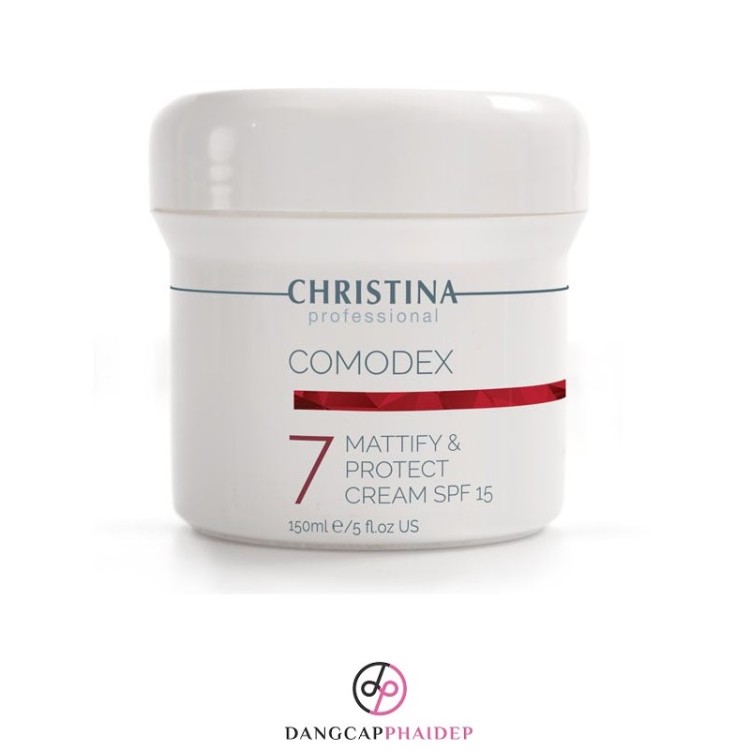 Kem chống nắng kiểm soát dầu Christina Comodex 7 Mattify & Protect Cream SPF 15 150ml là giải pháp bảo vệ da, kiểm soát dầu nhờn dành cho da dầu, da mụn, da hỗn hợp, đến từ thương hiệu dược mỹ phẩm Christina - Israel.