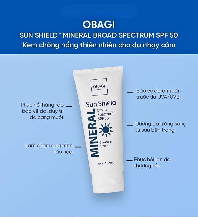 Kem chống nắng thiên nhiên cho da nhạy cảm Obagi Sun Shield Mineral Broad Spectrum SPF 50 85g – Tha hồ vui chơi ngày hè, không lo da rám nắng