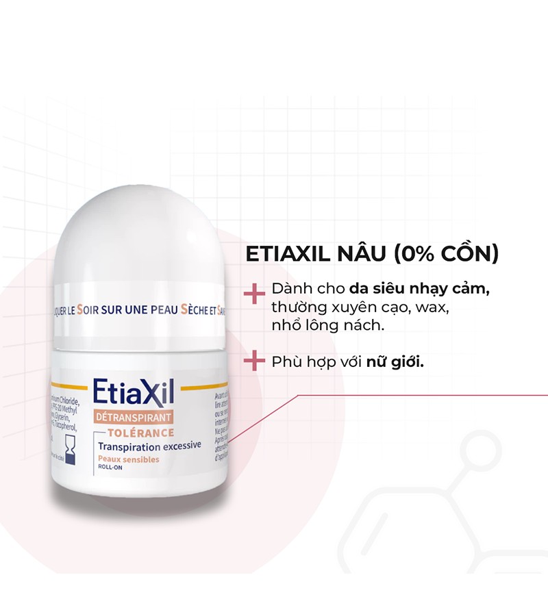 Bạn đang "khổ sở" vì vùng da dưới cánh tay ẩm ướt, có mùi hôi khó chịu và dễ bị kích ứng? Lăn nách Etiaxil chính là "cứu tinh" giúp bạn "xua tan" nỗi lo này. Với công thức đặc biệt dành riêng cho da nhạy cảm, sản phẩm giúp khử mùi hôi, ngăn tiết mồ hôi và mang lại cảm giác khô thoáng, tự tin suốt 72 giờ.