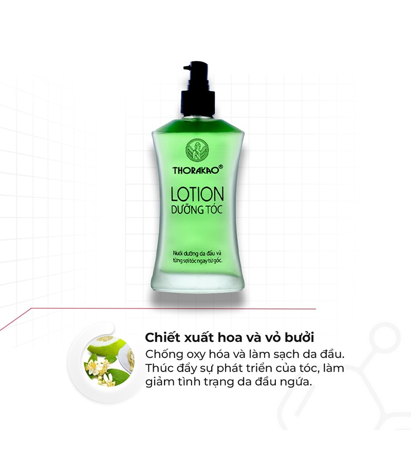 Lotion dưỡng tóc Thorakao tinh chất bưởi là sản phẩm giúp ngăn ngừa rụng tóc, nuôi dưỡng da đầu, kích thích mọc tóc, đồng thời bảo vệ da đầu khỏi vi khuẩn, nấm và gàu. Với chiết xuất hoa và vỏ bưởi thiên nhiên, sản phẩm mang đến sự dịu nhẹ, không gây kích ứng, giúp mái tóc chắc khỏe và mềm mượt hơn từng ngày.