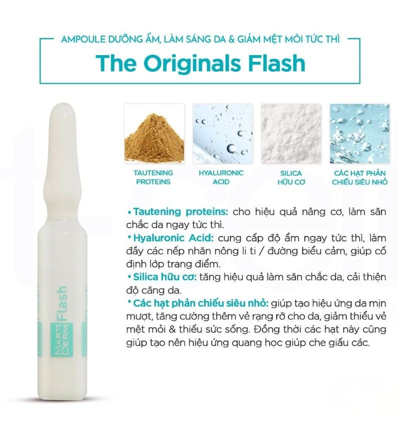 Tinh chất dưỡng ẩm, làm sáng và giảm mệt mỏi tức thì MartiDerm The Originals Flash 5 ống x 2ml