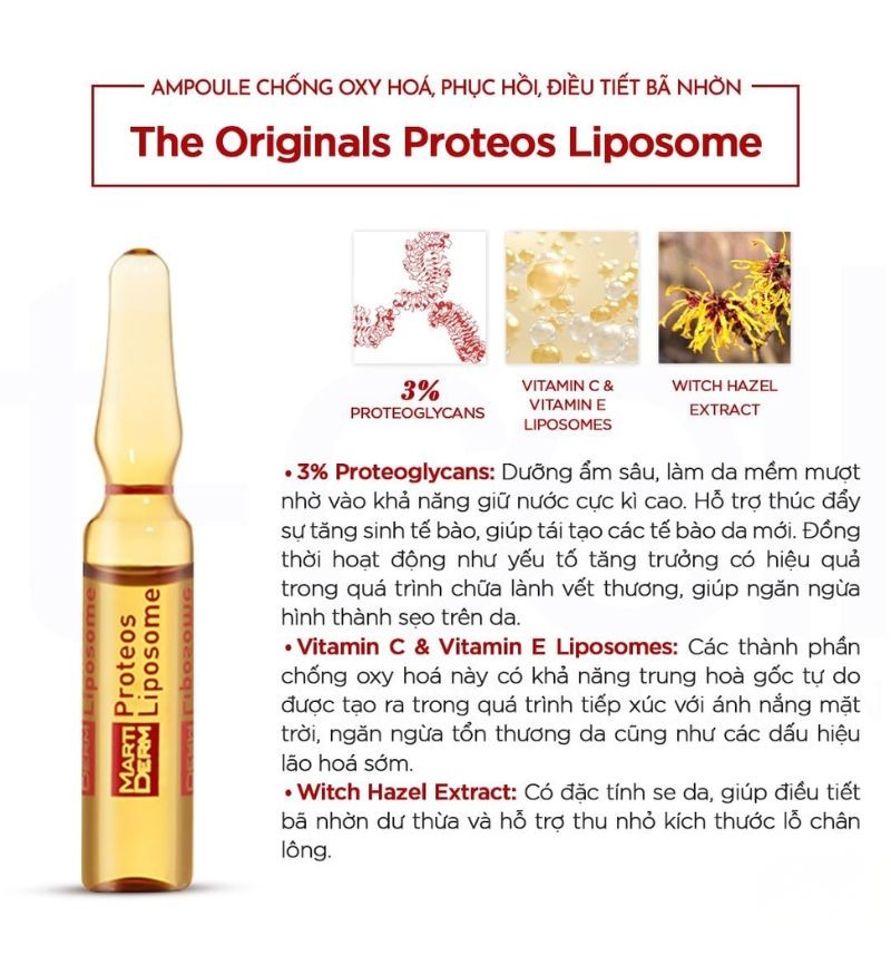 Tinh chất chống oxy hóa điều tiết bã nhờn The Originals Proteos Liposome của dược mỹ phẩm Martiderm ngay sau khi có mặt trên thị trường đã nhanh chóng trở thành một trong những sản phẩm bán chạy nhất của hãng.