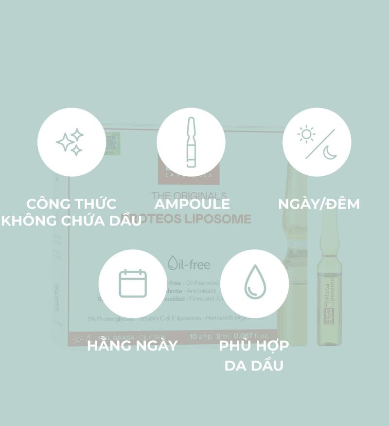 Sản phẩm được thiết kế dạng tinh chất cô đặc (ampoule) với công thức không chứa dầu, sở hữu bảng thành phần với 3% Proteoglycans kết hợp cùng Vitamins C & E liposomes và chiết xuất cây Phỉ giúp cấp ẩm sâu và tức thì cho da, cân bằng dầu thừa hiệu quả.