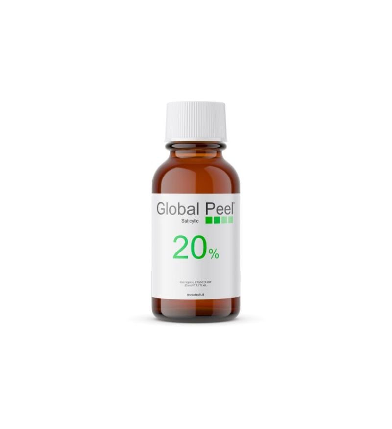 Global Peel Salicylic 20% là dòng dung dịch lột tẩy đặc trị đến từ thương hiệu Mesotech nổi tiếng của Ý, chuyên biệt trong việc chăm sóc và điều trị các vấn đề về da. Sản phẩm được đóng gói gồm một chai Peel Salicylic 20% dung tích 50ml, một chai Protector 10ml và một chai Peel Stop 25ml, mang lại giải pháp toàn diện cho da mụn cấp độ 2 và 3.