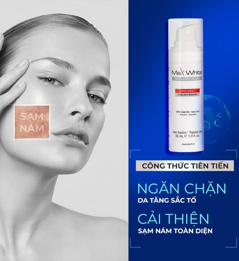 Kem dưỡng trắng da Max White là giải pháp cho làn da tăng sắc tố, giúp làm mờ thâm nám, tàn nhang, đốm nâu của thương hiệu dược mỹ phẩm Mesotech cao cấp tại Ý.