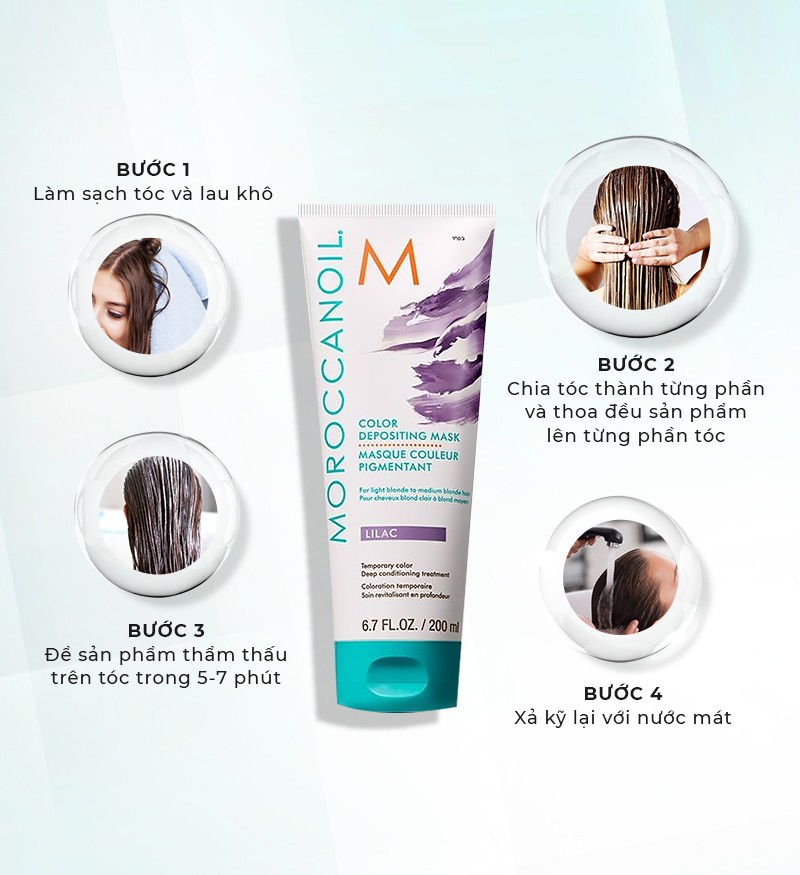 Mặt nạ bổ sung hạt màu dưỡng tóc Moroccanoil Color Depositing Mask cung cấp dưỡng chất chuyên sâu hỗ trợ tăng ánh sắc và làm mới những màu tóc nhuộm đã có trên tóc. Để sản phẩm phát huy tối đa hiệu năng, bạn nên thực hiện đầy đủ theo các bước sau.