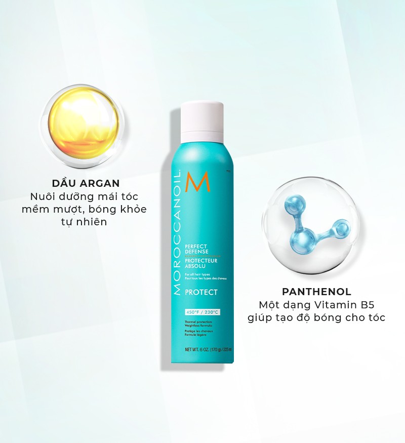 Moroccanoil Perfect Defense là dòng sản phẩm xịt chống nhiệt siêu nhẹ đến từ tập đoàn Moroccanoil – Israel. Thương hiệu này xuất hiện trên thị trường chưa đến 10 năm nhưng đã chiếm được tình cảm, sự tin dùng của hàng triệu khách hàng tại nhiều nước trên thế giới. Xịt bảo vệ tóc toàn diện Moroccanoil Perfect Defense chính là “kết tinh hoàn hảo” của công nghệ sản xuất hiện đại; với kết quả nghiên cứu thành công của đội ngũ các nhà khoa học, trong việc tạo ra một sản phẩm bảo vệ tóc khỏi nhiệt tốt nhất, toàn diện nhất.