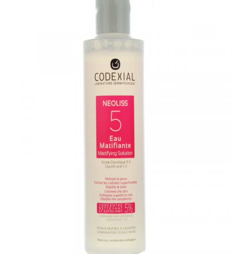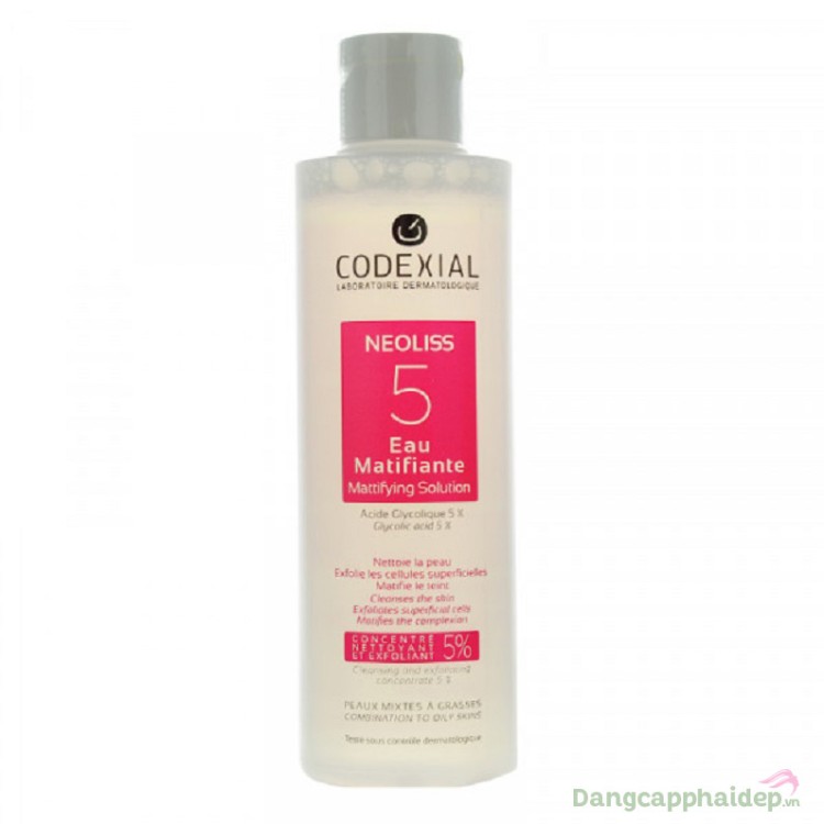 Nước cân bằng da Neoliss 5 Eau Matifiante 200ml thuộc dòng sản phẩm Neoliss (chăm sóc da nhờn, da dày sừng & trẻ hóa da) nổi tiếng của thương hiệu dược mỹ phẩm Codexial.