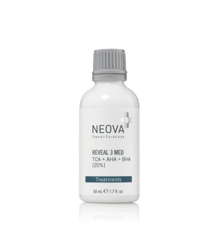 Dung dịch thay da sinh học Neova Reveal 3 Med Peel TCA + AHA + BHA 20% là giải pháp cho làn da lão hóa, nám, tàn nhang, giúp tẩy tế bào chết, kích thích tái tạo da và làm mờ thâm nám. Sản phẩm đến từ thương hiệu dược mỹ phẩm cao cấp Neova - Mỹ, thuộc tập đoàn Photomedex, được nhiều chuyên gia da liễu và người dùng tin tưởng.