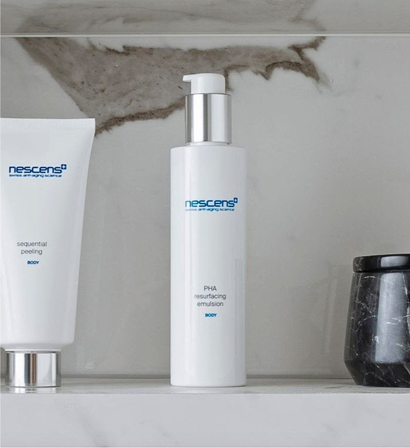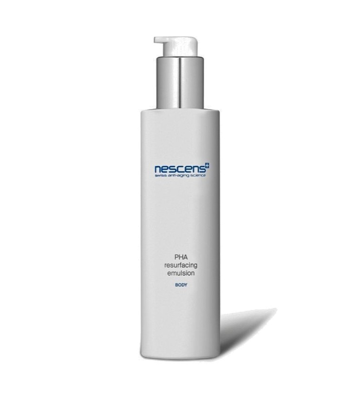 Nescens PHA Resurfacing Emulsion - Body thẩm thấu sâu nuôi dưỡng từng tế bào. Nhờ Axit lactobionic và Niacinamide cùng kết cấu dạng nhũ tương dễ thẩm thấu vào da giúp bổ sung độ ẩm và giữ nước hiệu quả cho da, ngăn ngừa tình trạng khô da. Đồng thời, góp phần cải thiện các nếp nhăn, tăng cường đàn hồi cho da thêm săn chắc, căng mượt. Nescens PHA Resurfacing Emulsion - Body đến từ nhà Nescens của Thụy Sĩ. Sản phẩm giúp loại bỏ các vùng da khô ráp và ngăn ngừa chúng xuất hiện trở lại nhờ thực hiện tác động kép: axit hóa cấp tính (tạo môi trường pH có tính axit) và tẩy da chết cường độ mạnh trên lớp sừng. Đồng thời, tăng cường tạo nên lớp hàng rào bảo vệ da tối ưu và cấp ẩm sâu, nuôi dưỡng làn da phục hồi những đặc tính tươi trẻ, trả lại cảm giác căng mịn và một diện mạo tươi tắn hơn.
