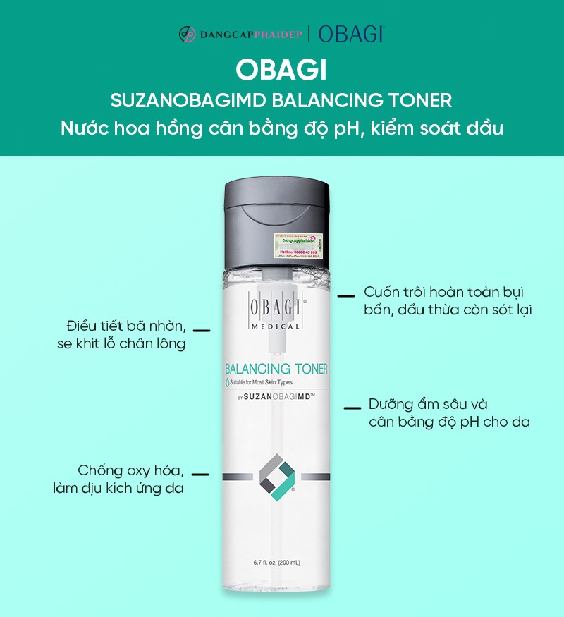 Nước hoa hồng SuzanobagiMD Balancing Toner 200ml là giải pháp làm sạch, cân bằng và dưỡng da dịu nhẹ, đến từ thương hiệu dược mỹ phẩm Obagi Medical - Mỹ.