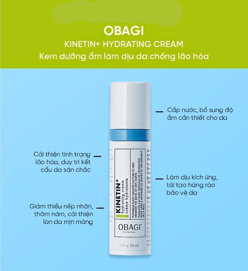 Kem dưỡng ẩm Obagi Clinical Kinetin Hydrating Cream làm dịu da chống lão hóa 50ml