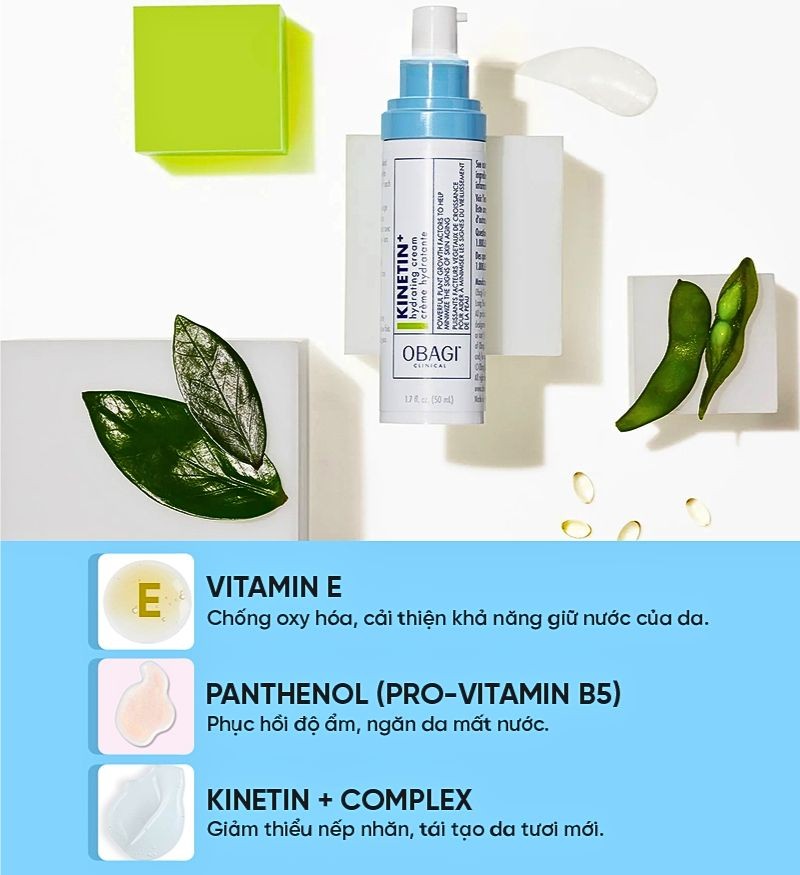 Obagi Clinical Kinetin Hydrating Cream của nhà Obagi Medical với kết cấu kem mỏng nhẹ là giải pháp tốt nhất dành cho những làn da mỏng yếu, da tổn thương, nhạy cảm, dễ kích ứng, ngứa rát mẩn đỏ, da sau trị liệu…nhờ thành phần chứa Vitamin E, Panthenol (pro-Vitamin B5), Kinetin + Complex. Sản phẩm có khả năng dung nạp tối ưu, giúp làm dịu nhanh da kích ứng, đỏ rát hay mẩn ngứa. Giảm nhanh các biểu hiện lão hóa da như nếp nhăn, sạm nám, đồi mồi…và bảo vệ da chống lại quá trình lão hóa sớm do yếu tố ngoại cảnh.