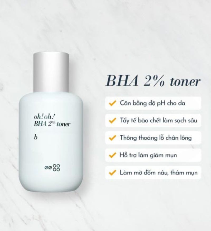 oh!oh! BHA 2% Toner : b phù hợp với người có làn da dầu và những ai đang tìm kiếm giải pháp làm sạch sâu mà không làm khô da.
