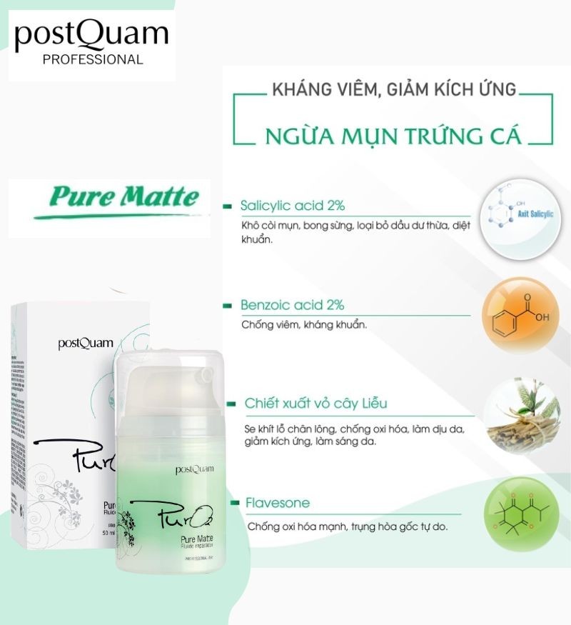Kem hỗ trợ giảm mụn & giảm thâm PostQuam Pure Matte Pure 02 50ml