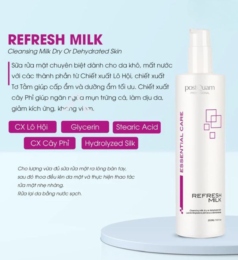 Sữa rửa mặt cho da khô, mất nước PostQuam Refresh Milk 250ml