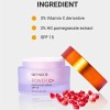 Công thức hoàn hảo được làm giàu với dẫn xuất Vitamin C nồng độ cao và chiết xuất quả lựu. Với hiệu quả chống oxy hóa cao, tiêu diệt gốc tự do mạnh mẽ. Ngoài ra, kem dưỡng này còn ngăn ngừa sự rối loạn sắc tố cho làn da luôn tươi sáng đều màu và ngăn ngừa các dấu hiệu lão hóa. Chỉ sau một thời gian ngắn sử dụng, làn da trở nên trắng mịn và đồng đều tông màu da.