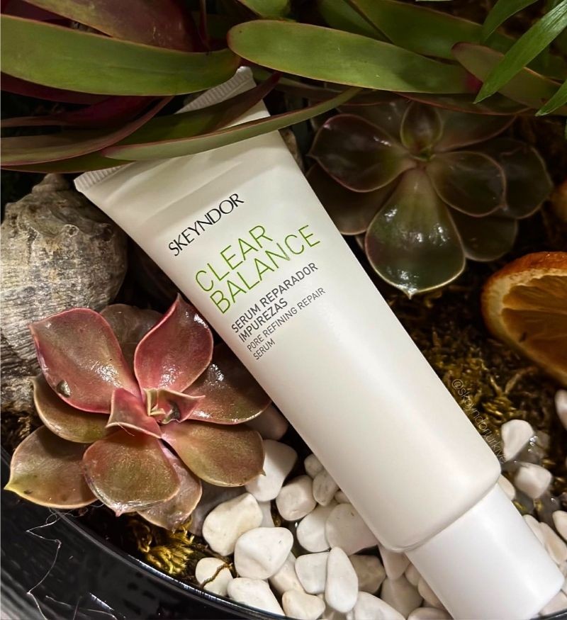 Skeyndor Pore Refining Repair Serum nằm trong dòng chăm sóc làn da thiên dầu và bị mụn trứng cá chuyên nghiệp - Clear Balance của hãng Skeyndor. Tinh chất là sự kết hợp hoàn hảo hai hoạt chất Bakuchiol và Ursolic Acid, bào chế theo công nghệ Liposome. Giúp làm thông thoáng các bít tắc sâu dưới lỗ chân lông, giảm sự hoạt động của tuyến dầu. Đồng thời, tái tạo các tổn thương trên da, chống sưng tấy và kháng khuẩn hiệu quả.