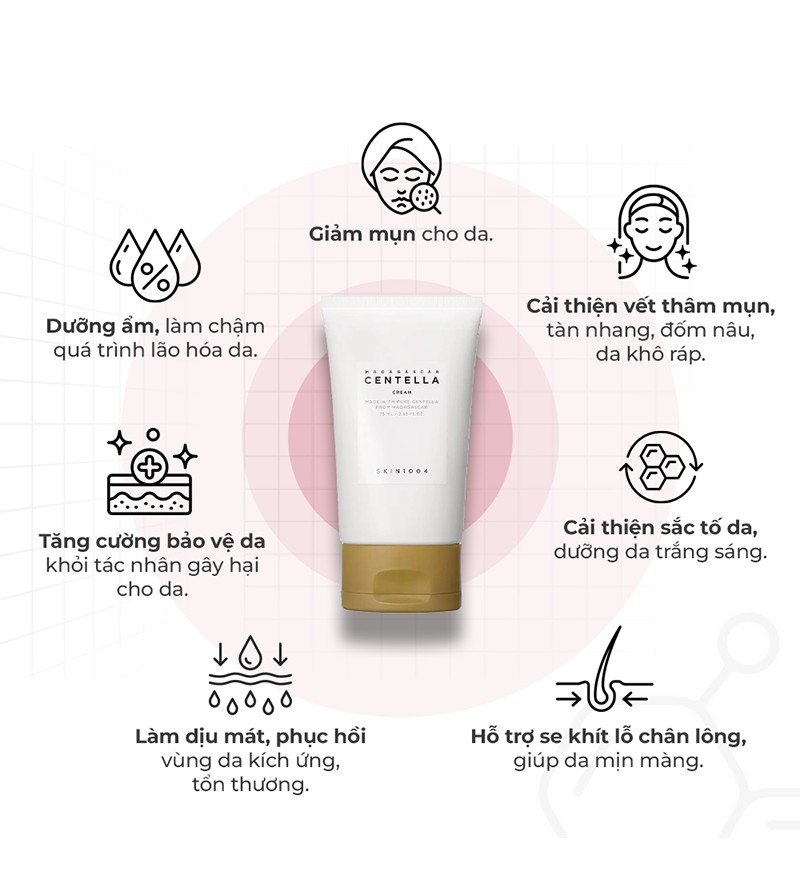 Kem dưỡng Skin1004 Madagascar Centella Cream không chỉ giúp giảm mụn, phục hồi da mà còn giúp da khỏe mạnh hơn. Sử dụng sản phẩm thường xuyên, bạn sẽ cảm nhận được sự thay đổi rõ rệt của làn da: giảm mụn, da mịn màng, khỏe mạnh và rạng rỡ hơn.