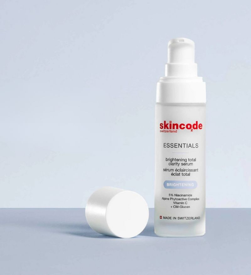 Skincode Alpine White Brightening Total Clarity Serum thuộc bộ sưu tập Skincode Essentials Alpine White. Đây là dòng sản phẩm dạng serum lỏng nhẹ, thẩm thấu nhanh vào da nổi tiếng với khả năng cải thiện sự đổi màu và sắc tố da vượt trội, được nhiều chuyên gia và người dùng đánh giá cao. Sản phẩm này được điều chế với các đặc tính chữa lành, làm dịu và tái tạo của công nghệ độc quyền CM-Glucan, cùng với Niacinamide và phức hợp chiết xuất từ thực vật Alpine. Mang đến công dụng ức chế melanin, xóa mờ dấu hiệu của sắc tố và các khuyết điểm khác. Tích cực dưỡng da sáng mịn, đều màu trong thời gian nhanh nhất.