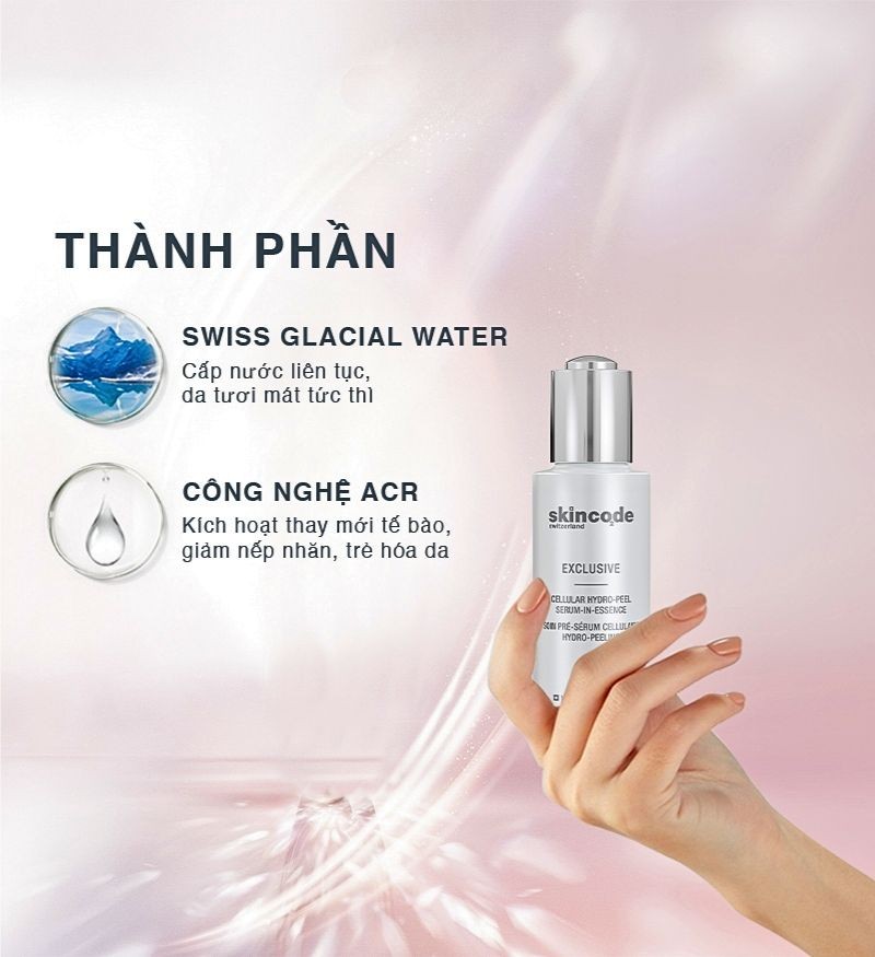 Theo các chuyên gia, sử dụng tinh chất chuyển hóa tế bào thay mới làn da Cellular Hydro-Peel Serum-In Essence của thương hiệu Skincode có thể coi là giải pháp chăm sóc da mang tính cách mạng. Bởi lẽ, nó có khả năng thẩm thấu và tác động đến cấp độ tế bào ngăn ngừa lão hóa da hiệu quả. Với sự kết hợp 5%% Axit Lactic và Tri-Peptide giúp trẻ hóa da mạnh mẽ và đẩy lùi các dấu hiệu tuổi tác, cụ thể là cải thiện sự xuất hiện của làn da mệt mỏi, không đều màu và nếp nhăn nhỏ.
