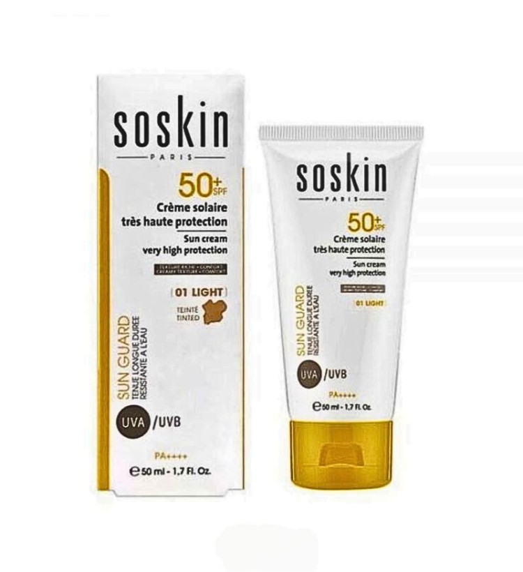 Soskin SPF 50 Sun Cream (Tinted 01) với khả năng chống nắng cực đỉnh là sản phẩm kem chống nắng hàng đầu tại Pháp. Với các thành phần chính gồm Titanium Dioxide, màng lọc hóa học, vitamin E, Allantoin, Silica,...không chỉ bảo vệ da toàn diện nó còn có thành phần dưỡng ẩm giúp nuôi dưỡng và duy trì làn da tươi trẻ. Với chỉ số SPF cao cùng màng lọc độc quyền có thể ngăn ngừa sự tác động của các loại tia UV. Sản phẩm còn được bổ sung thêm thành phần cung cấp độ ẩm, chống lão hóa và đặc biệt là thúc đẩy quá trình sản sinh collagen. Góp phần làm mờ nếp nhăn, vết nám và giúp da đều màu hơn.