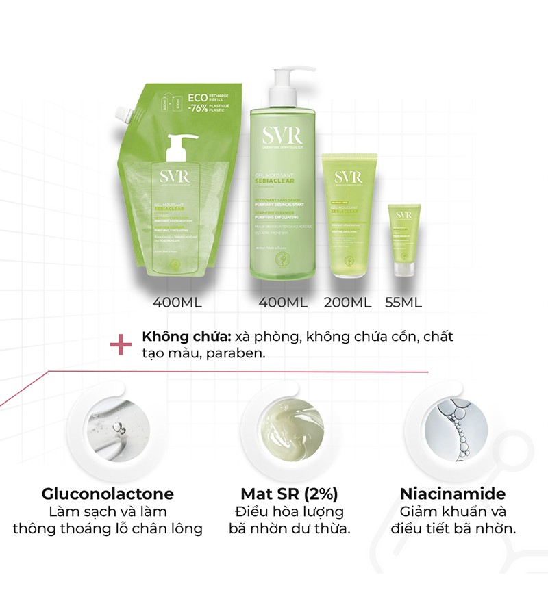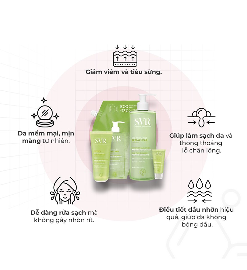 Không chỉ làm sạch da, gel rửa mặt SVR Sebiaclear Gel Moussant còn giúp da khỏe mạnh hơn. Sử dụng thường xuyên, bạn sẽ nhận thấy làn da cải thiện rõ rệt: sạch sâu, thông thoáng, giảm mụn và tươi mát hơn.