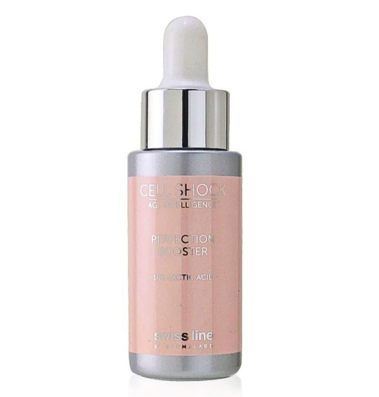 Swissline Cell Shock Age Intelligence Youth Inducing System chứa Cellactel II, tế bào gốc thực vật mầm cà phê Bengalanis, L-lysin, L-arginie, hợp chất Elastomer, Retinol, Panthenol (vitamin B5), tảo đỏ Palmaria Palmata, giúp chống lão hóa, tăng cường sản sinh collagen, tái tạo và bảo vệ da, đồng thời dưỡng trắng, làm đều màu da.