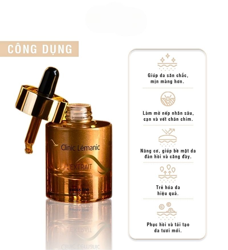 L’extrait chính là tinh hoa kết hợp giữa liệu pháp trẻ hóa và phục hồi da nổi tiếng của Clinic Lemanic cùng với công nghệ hiện đại, công thức trẻ hóa độc quyền của Swissline. Với kết quả trị liệu nâng cơ, chống lão hóa tối ưu và siêu vượt trội, Swissline Clinic Lemanic L’extrait không chỉ đem đến cho khách hàng trải nghiệm trẻ hóa da tức thì mà còn là trải nghiệm cảm xúc hạnh phúc, sự hoàn mỹ của giới thượng lưu. Đây là một trong những dòng nâng cơ phục hồi da được các bác sĩ da liễu khuyên dùng.