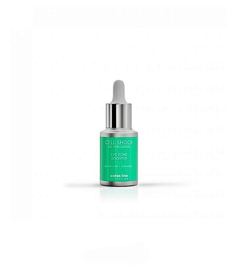 Swissline Cell Shock Eye Zone Booster thuộc dòng Cell Shock Age Intelligence đình đám nhờ các sản phẩm tăng cường chức năng rào cản và điều chỉnh các phản ứng viêm. Sản phẩm với 2% caffein và ceramides từ thực vật tạo điều kiện cho sự gắn kết của da tốt hơn và giúp giảm nếp nhăn hiệu quả. Cùng với đó là làm tăng đáng kể khả năng thoát nước quanh vùng mắt đồng thời giải độc cho làn da mỏng manh vùng mắt để có vẻ ngoài tươi tắn, rạng ngời hơn.