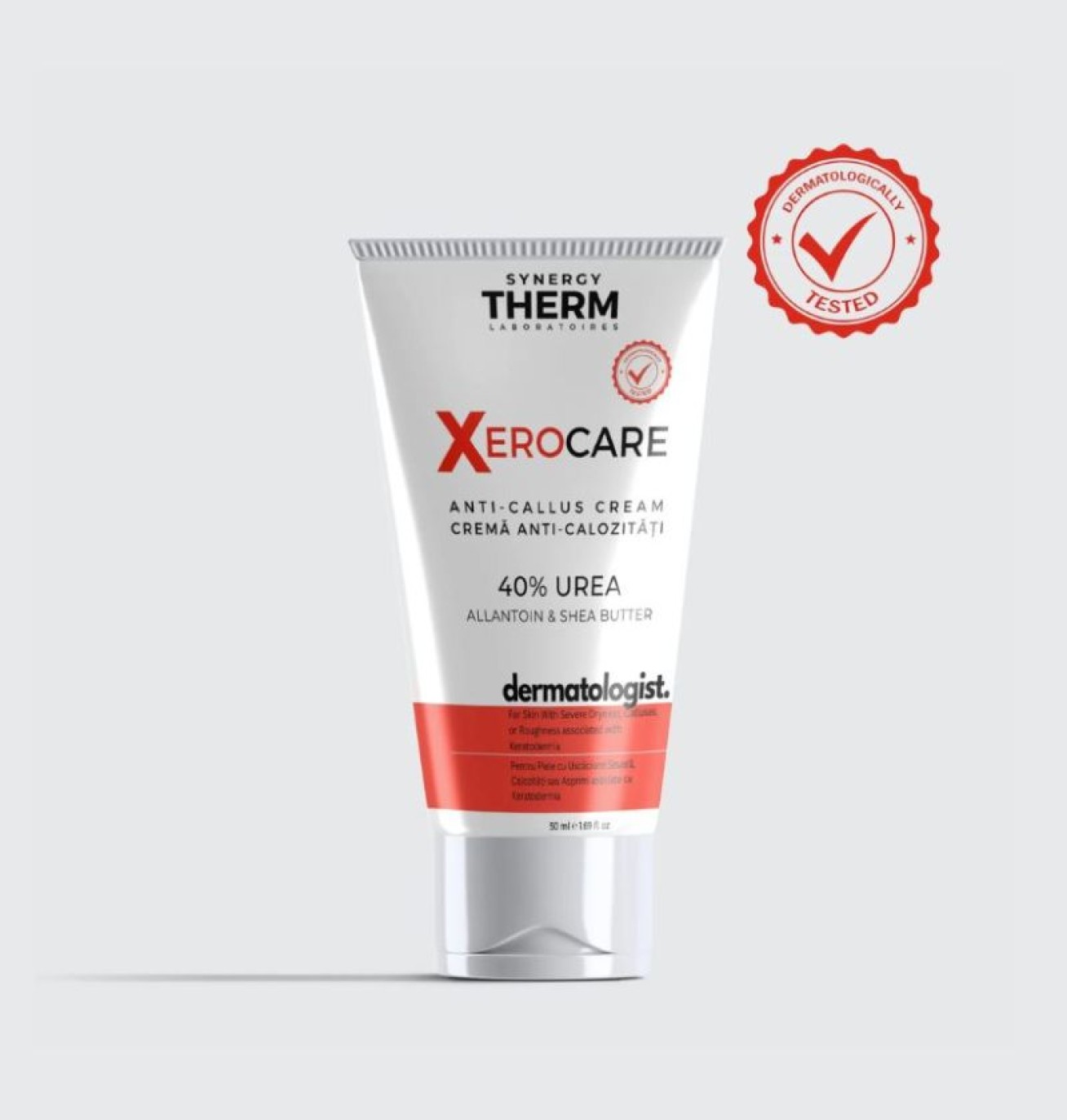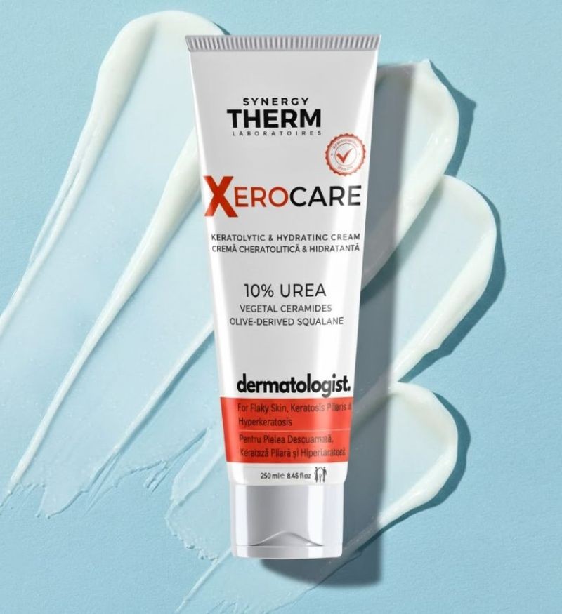 Được phát triển từ thương hiệu Synergy Therm, kem dưỡng Xerocare Keratolytic & Hydrating Cream 10% Urea ứng dụng cơ chế kép với 10% Urea, vừa đóng vai trò tiêu sừng để hòa tan liên kết tế bào chết, vừa là nhân tố giữ ẩm tự nhiên hút nước sâu vào biểu bì. Sự kết hợp này giải quyết hiệu quả tình trạng dày sừng nang lông, lông mọc ngược và làm mềm hiệu quả các vùng da chai sần ở khuỷu tay, gót chân mà không gây nhờn dính.