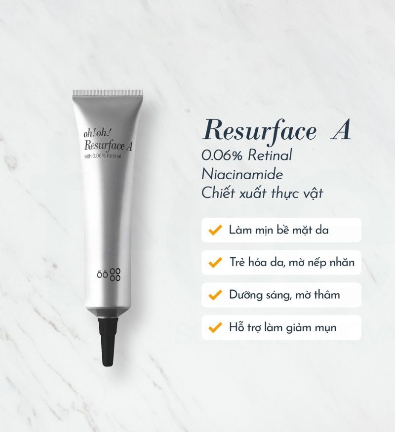 Tinh chất trẻ hóa tái tạo da oh!oh! Resurface A (with 0.06% Retinal) tuýp 20ml